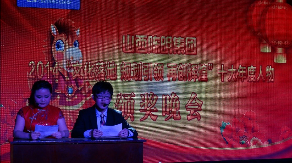 2014年2月16日15時(shí)許,陳明集團(tuán)2014“文化落地、規(guī)劃引領(lǐng)、再創(chuàng)輝煌”十年度人物頒獎(jiǎng)聯(lián)歡會(huì)于桔子酒店隆重開幕。本次聯(lián)歡會(huì)對(duì)陳明的十大人物給予了表彰,并邀請(qǐng)每位員工家屬到場(chǎng)觀看員工們自編自演的節(jié)目。