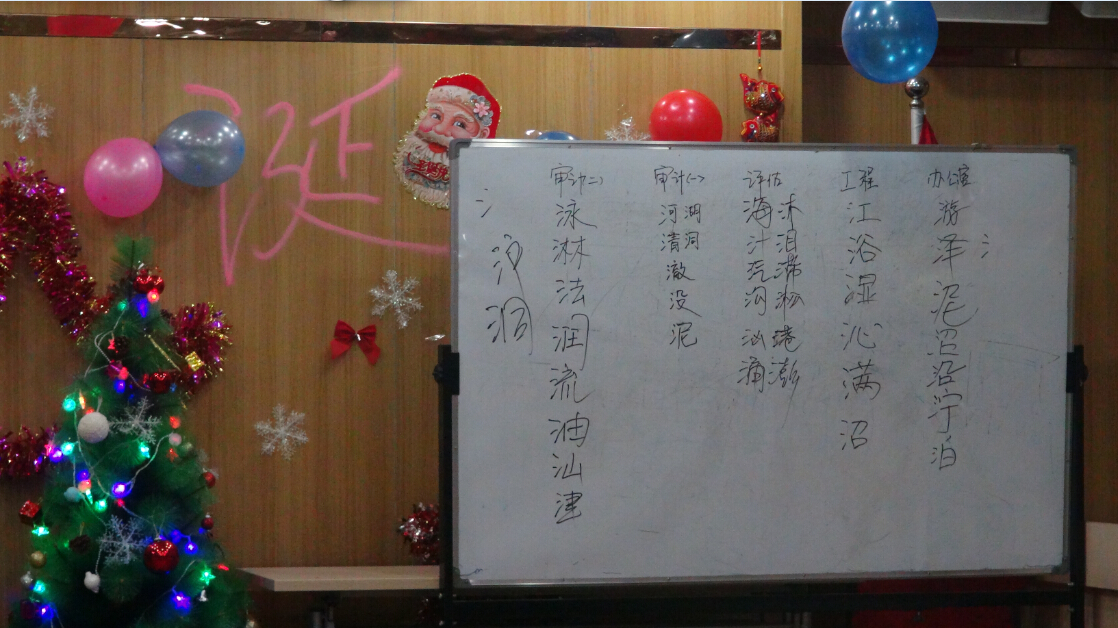 今年的平安夜活動(dòng)比起往屆,增添了許多亮點(diǎn)。此次聯(lián)歡的節(jié)目?jī)?nèi)容形式多樣、豐富多彩。聯(lián)歡以張局長(zhǎng)致辭開場(chǎng),集體許愿將一片溫馨融洽的氣氛帶入了現(xiàn)場(chǎng);集體熱身舞蹈更是讓大家感到了濃濃的節(jié)日氛圍;基建部的詩歌朗誦《我希望》讓大家經(jīng)受了一次思想的洗禮,審計(jì)一部動(dòng)感十足的一曲《奔跑》更是深受大家的喜愛;審計(jì)二部《租個(gè)女友回家過年》恢諧生動(dòng)的表演引來一陣又一陣的笑聲;評(píng)估部精彩的《舞蹈大串燒》更是讓大家忍不住集體點(diǎn)贊;緊張又刺激的腦筋急轉(zhuǎn)彎、踩氣球、猜字謎、削蘋果等游戲,一次次的將晚會(huì)氣氛推向高潮。掌聲和歡呼聲此起彼伏,臺(tái)上臺(tái)下成了一片激情四溢的海洋。辦公室、財(cái)務(wù)部、文化部的詩歌朗誦《相信未來》之后,全體家人熱情合唱了司歌《我相信》,表達(dá)了大家對(duì)公司的深深的情懷和對(duì)未來無限的希望。