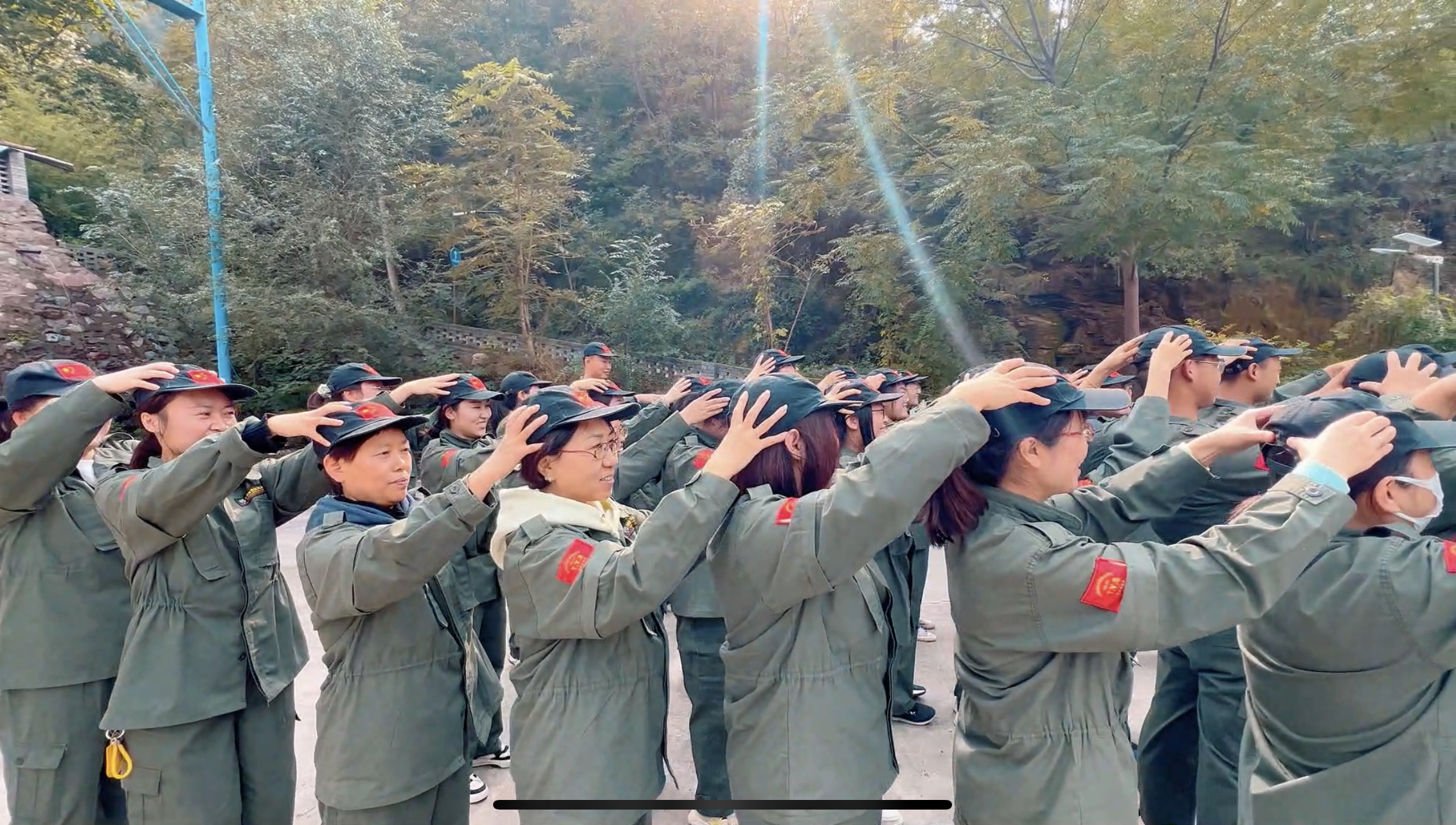10月11日上午我們到達(dá)河南省新鄉(xiāng)八里溝景區(qū),大家領(lǐng)取訓(xùn)練服裝后,在歡聲笑語中拉開了此次團(tuán)建的破冰行動,一張張笑臉在陽光的照射下,顯得格外美麗和帥氣。